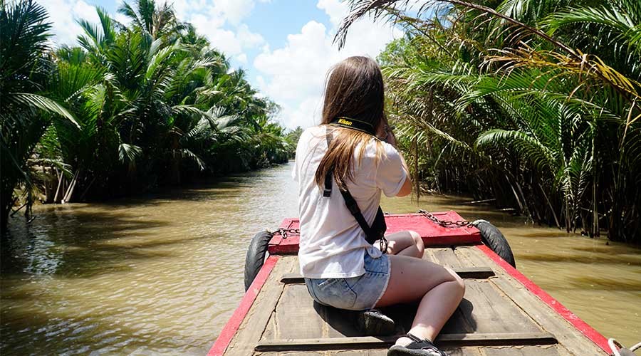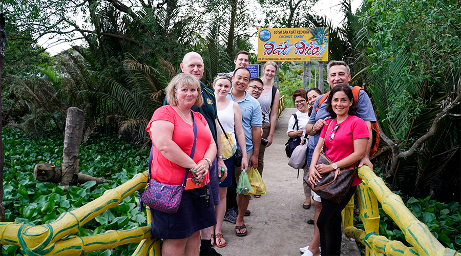 Continuing walking on the village’s road to coconut candy shop, learn how to make candy, show some handicraft made by coconut tree. Take a walk through village with two sides there are so many kind of fruits, flowers, trees, local houses, children in Mekong delta, take your time to have nice photos and enjoy nature scenery.